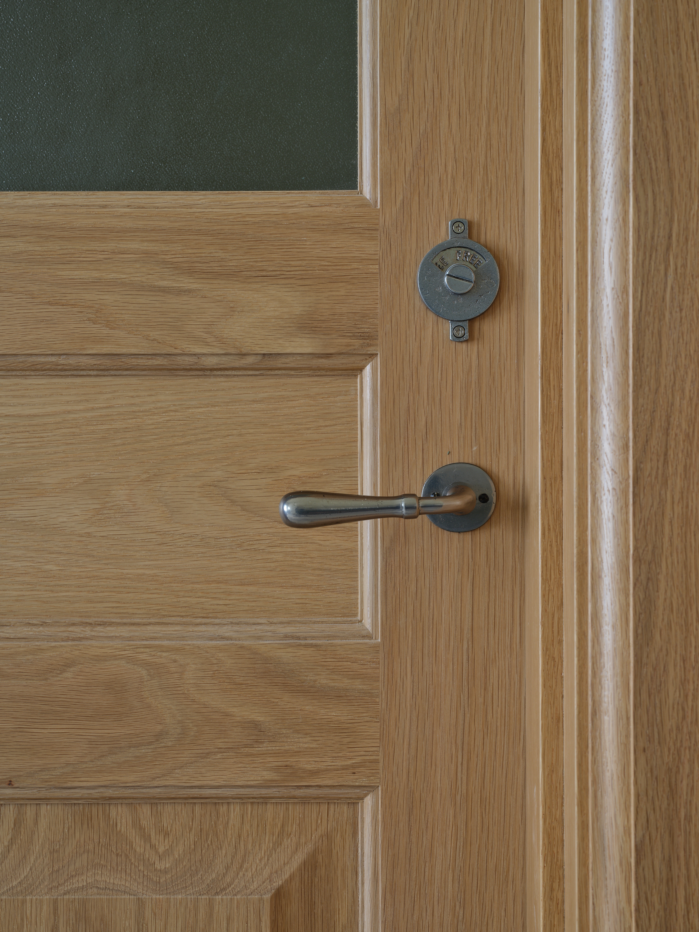 Sited within the garden is a charming 324-square-foot detached studio. Guests are accommodated with a built-in double queen bunk, half bath and outdoor shower. The studio interior is made more grand with a vaulted ceiling constructed of solid Douglas fir timbers and boards, and offers work-from-home possibility with a built-in desk and storage loft.