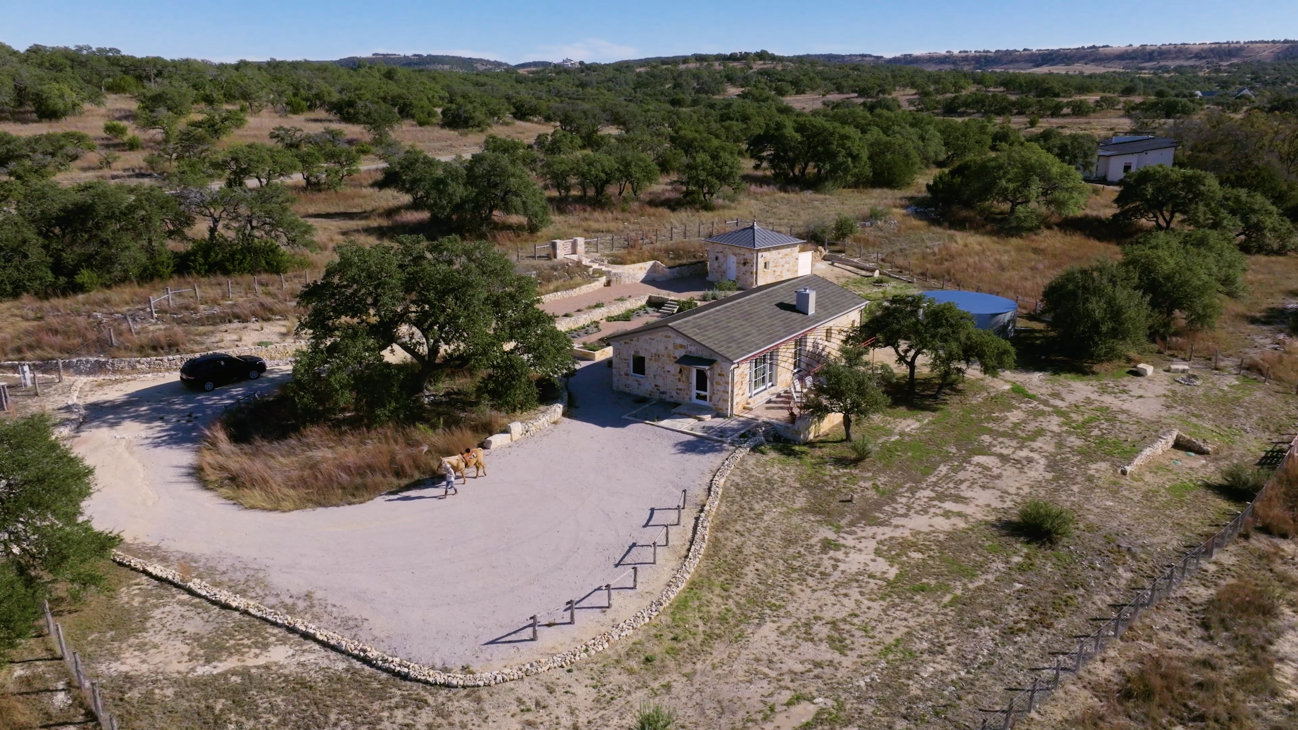 A pastoral country home in The Preserve at Walnut Springs in Johnson City, Texas, thoughtfully designed by Rick & Cindy Black Architects for durability and comfort in the hill country. Sited on 7 acres, the homesite includes a main house and detached studio, with stone garden walls and 1-acre fence enclosure.